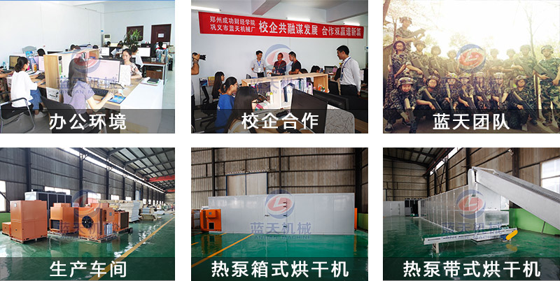 河南藍天機械制造有限公司(原鞏義市藍天機械廠)成立于2000年,是一家從事熱力烘干技術研發、生產、銷售、安裝和技術咨詢服務為一體的技術企業。公司自成立以來,專注于各種脫水烘干設備的研發和制造,如熱泵烘干機、水果烘干機、食品烘干機、蔬菜烘干機,技術力量雄厚,擁有一批高水平、高素質、朝氣蓬勃的職工隊伍,以“ 用戶至上 ”為理念,不斷開拓進取,積極投入資金引進設備,加大與國內外同行及科研院校合作。