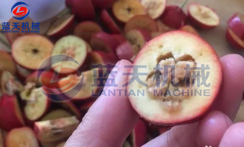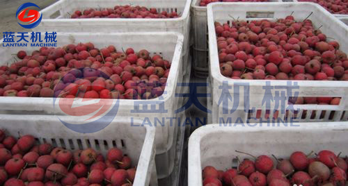 第二步:洗凈山楂果后,要盡快擦干其外表的水分,再進行切片處理,需要去除或保留果核。現(xiàn)在也有專門的切片機器,效率很高,且切片的厚薄均勻,一般在3mm左右。