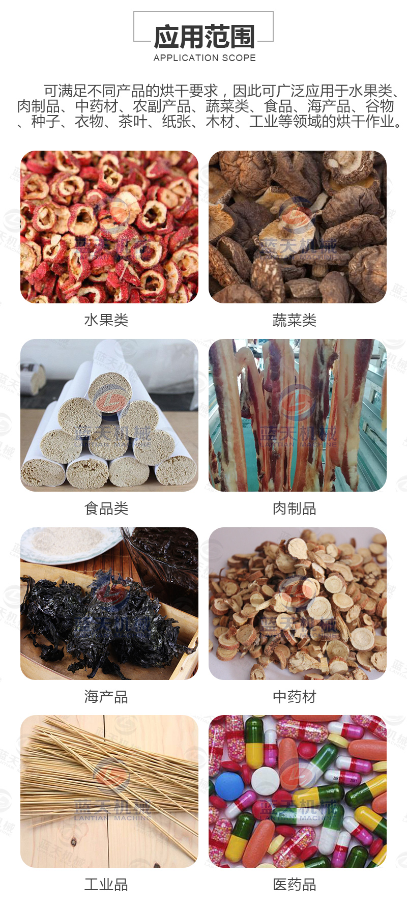 新鮮山楂片的含水率約為80%,烘干的目標含水率約為13%,使用空氣能熱泵小型山楂片烘干機,將智能溫度設定為55度左右的范圍,使山楂片所含的游離水大量蒸發,熱風循環系統不斷輸送新風,將風量均勻的輸送到各層架,排風,促使蒸發的水份通過凝結水管路系統排出。