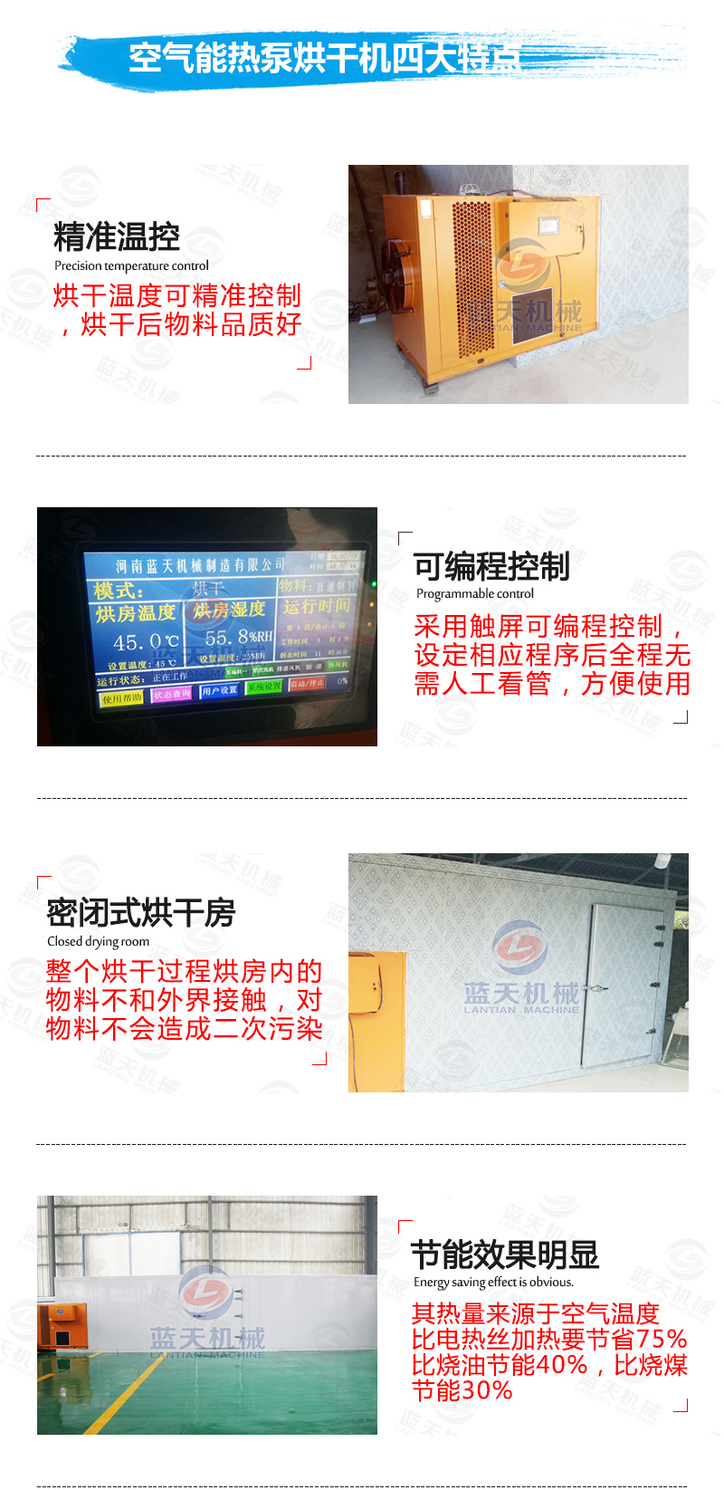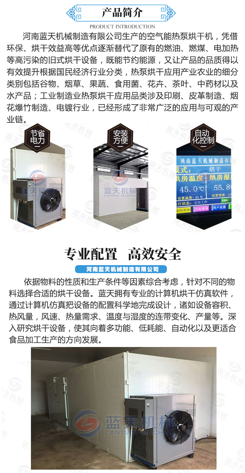【藍天空氣能熱泵烘干機介紹:】