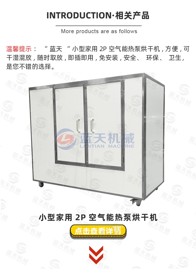 采用平流風烘干運行,另外根據(jù)龍眼的特性(初始水分含量高、溫度敏gan性高,糖分含量高),通常溫度控制在50-60℃,熱泵蒸發(fā)器吸收小型龍眼烘干機外的空氣,經(jīng)過循環(huán)的加溫過程,吸收龍眼肉中的水分,并經(jīng)過熱風循環(huán)系統(tǒng)有效排濕及冷凝過程把龍眼肉的水分排出烘干房外,直至完成智能溫濕控制系統(tǒng)的指令,來實現(xiàn)龍眼烘干的優(yōu)化工藝,烘干完成約為12小時左右。