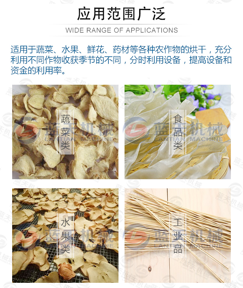 蘿卜干烘干機可廣泛用于烘干胡蘿卜、白蘿卜、蘿卜皮、蘿卜丁,片狀條狀都可能烘干,烘干后不變色,復水性好,加工品質佳,有適用小批量加工的蘿卜烘干機,也有適用大批量加工的全自動網帶蘿卜干烘干機。蘿卜干烘干機是一種熱泵烘干機,這種烘干機是一種環保節能烘干方案。采用這種技術的蘿卜烘干機效率高,品相好,烘干溫和,可以控制溫度和濕度,烘干過程中幾乎不產生污染。